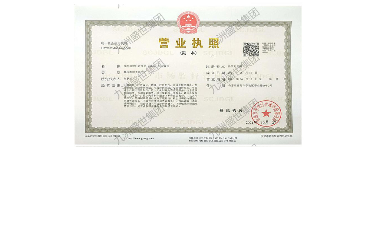 九洲盛世廣告展覽公司營業執照